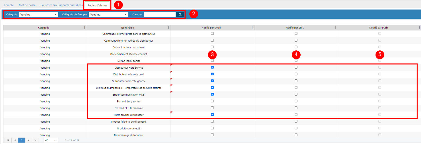 À noter : l’alerte concernant la température n’est à cocher que si vous avez une machine frigorifiée