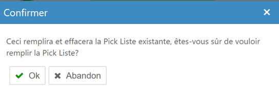 à Remplir suivant Pick list