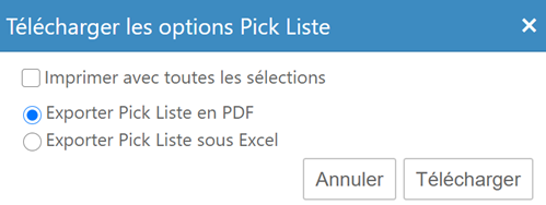 Par Télécharger la Pick Liste vous accédez au format PDF