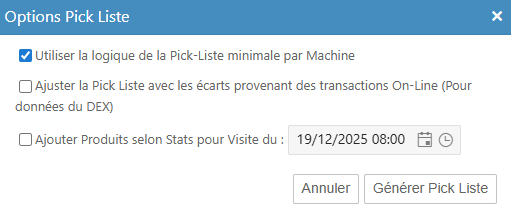 o Utiliser la logique de la Pick liste minimale par Machine :